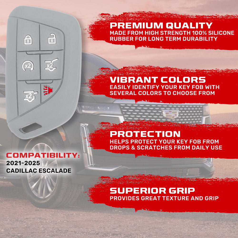 Cadillac 21-25 Escalade 100% Silicone Rubber Key Fob Cover Premium Quality - Multiple Colors