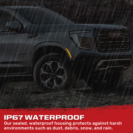 RECON OLED Fender Lights are built to last, made from military-grade reinforced ABS plastic with impact-resistant housing. They boast an IP67 waterproof rating, ensuring protection against dust, dirt, water, and snow, and are UV-treated to guard against direct sunlight exposure, ensuring long term reliability and durability for years to come.