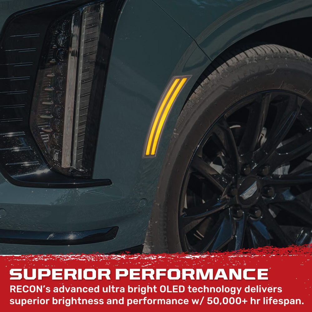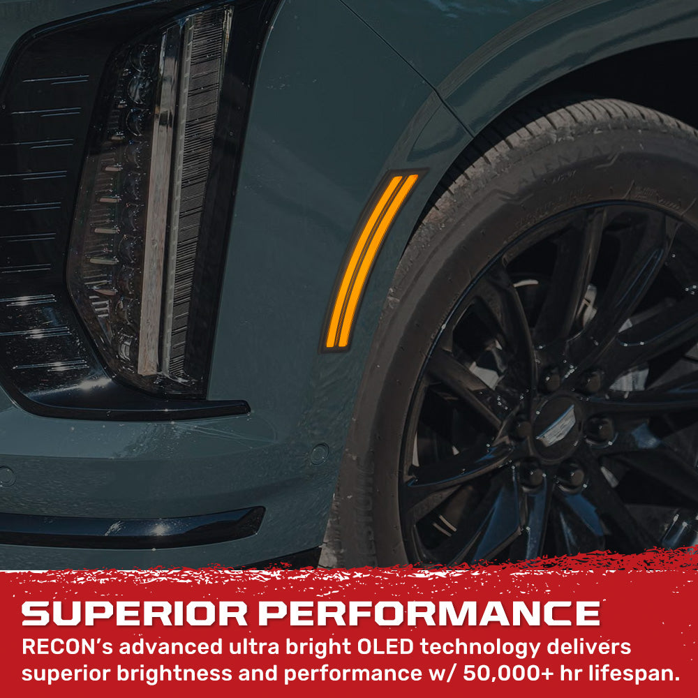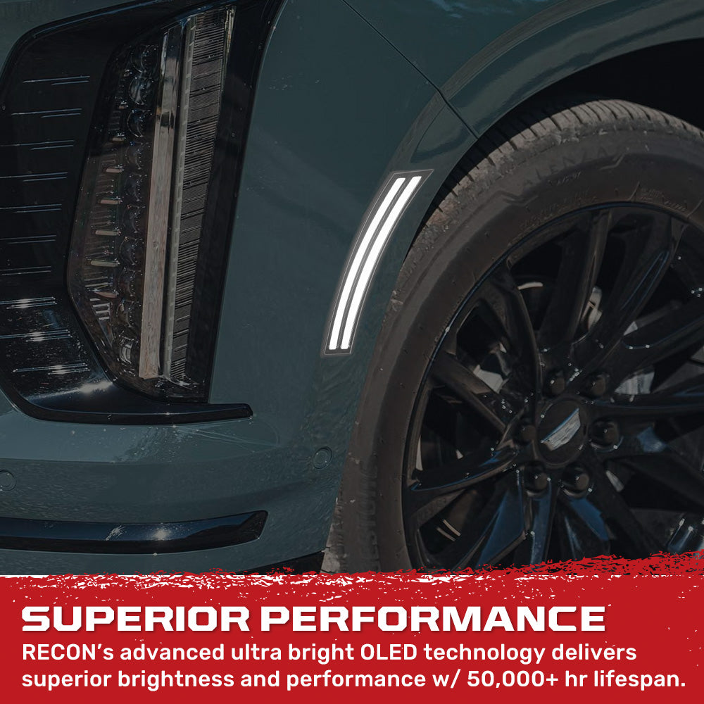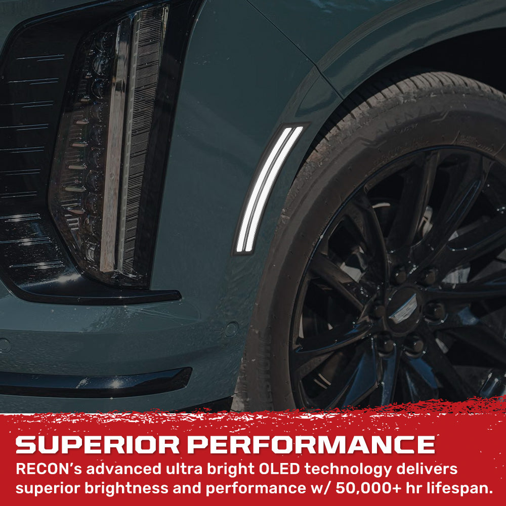 RECON - Cadillac 2025-2026 Escalade & GMC 2025-2026 Yukon, Yukon XL, Yukon Denali & 2025-2026 Chevy Tahoe/Suburban Front Fender Lenses Ultra Bright OLED Lights - Multiple Options