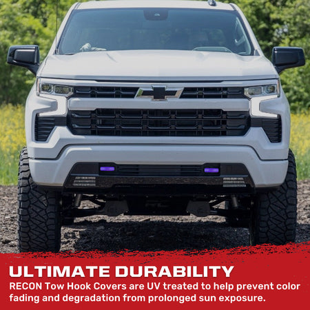 RECON - Chevy 2020-2025 Silverado 2500/3500 Tow Hook Covers 2-Piece Set of 100% Silicone Rubber Tow Hook Covers Standard & LED Options - Multiple Colors