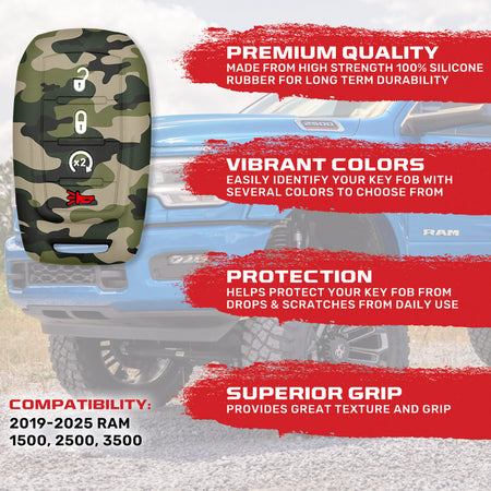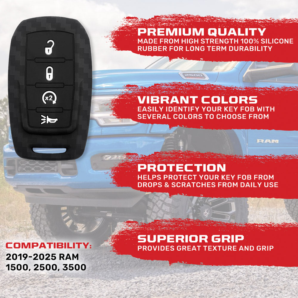 Dodge 19-25 RAM (1500, 2500, 3500) 1-Piece 100% Silicone Rubber Key Fob Cover - Multiple Colors