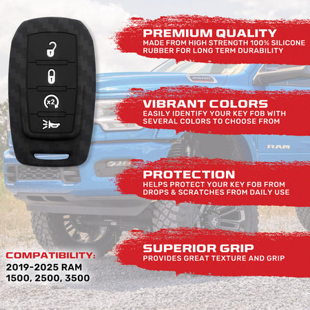 RECON - Dodge 2019-2025 RAM 1500/2500/3500 100% Silicone Rubber Key Fob Cover Premium Quality - Multiple Colors