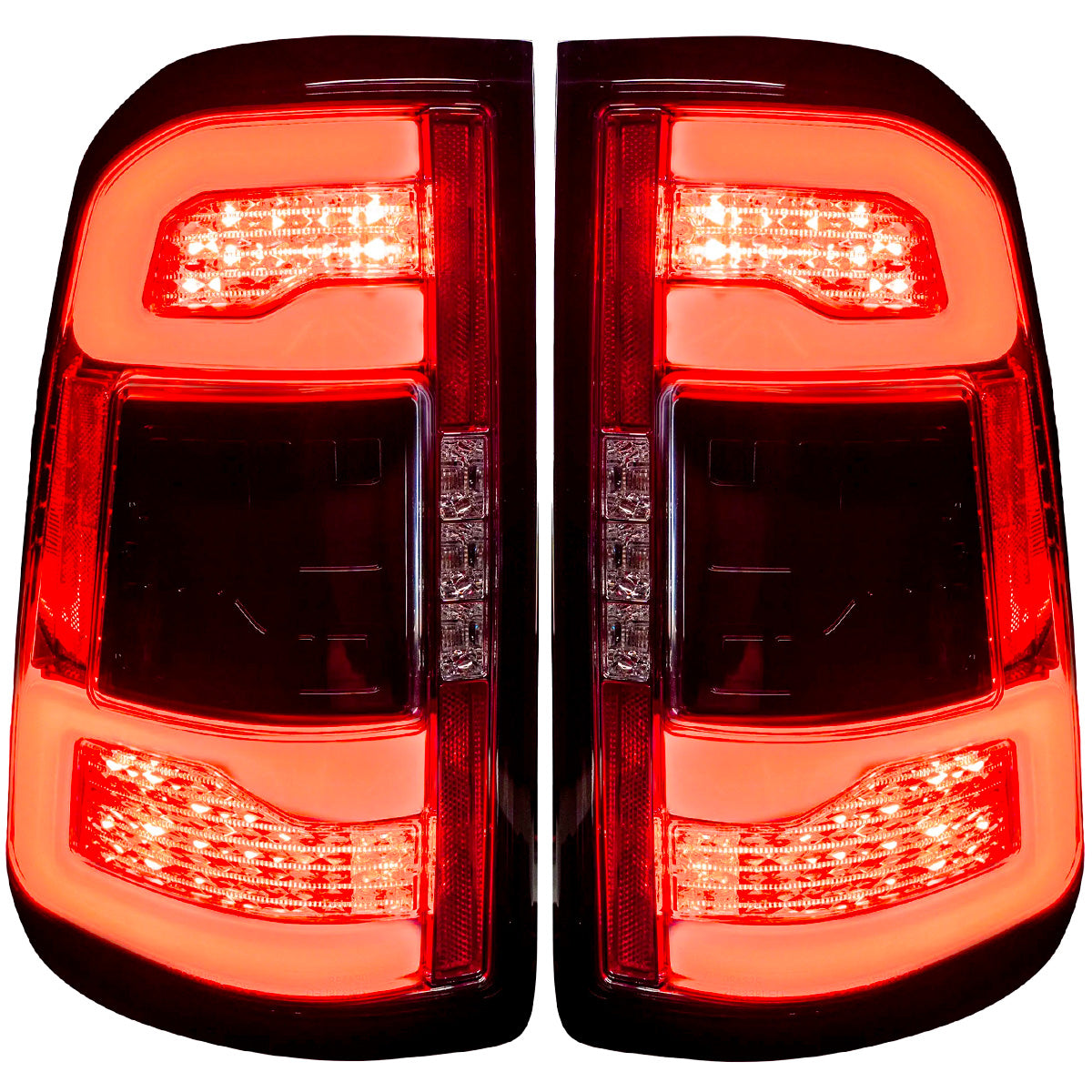 RECON Dodge 2019-2024 RAM 2500/3500 Ultra Bright OLED Tail Lights Scanning Red Signals (Replaces Factory/OEM LED Tail Lights with BLIS) - Multiple Lens
