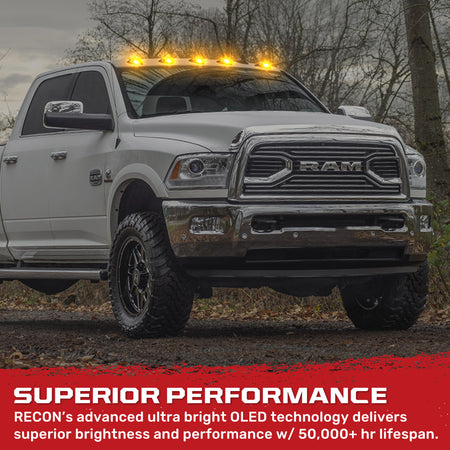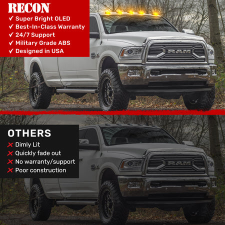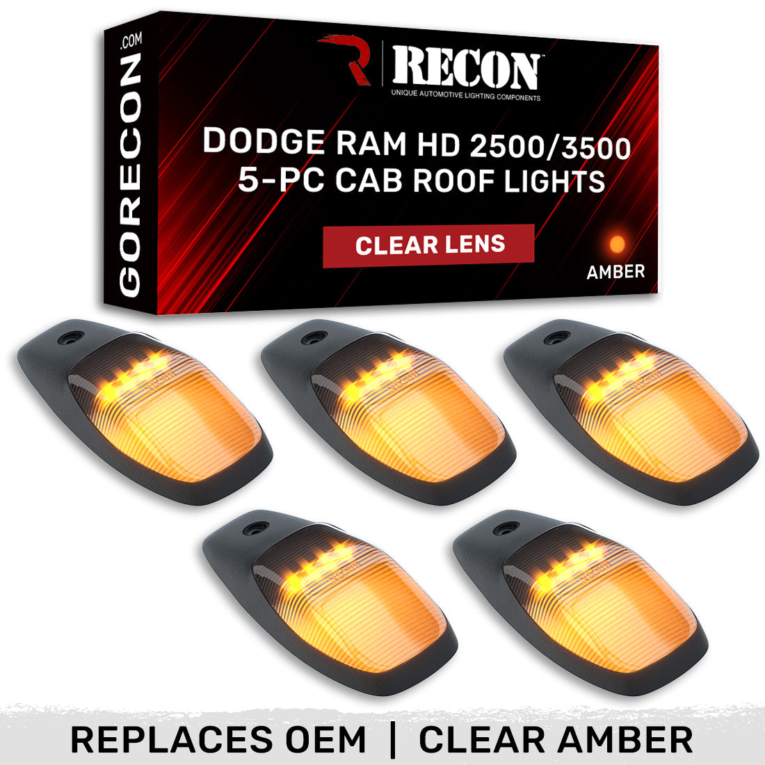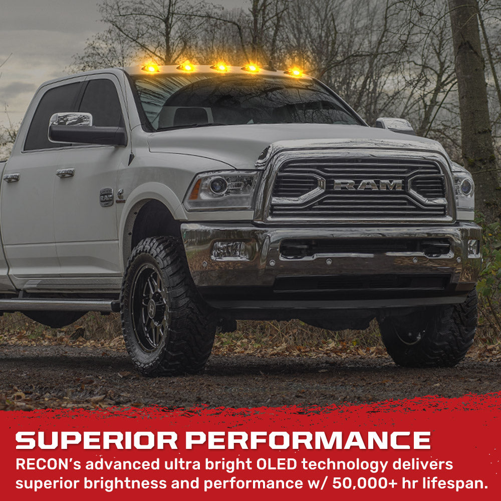 - RECON 5-Piece Amber LED Cab Roof Light Kit with Clear Lens (Replaces Factory/OEM Cab Lights Only)