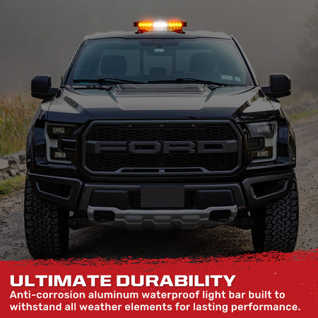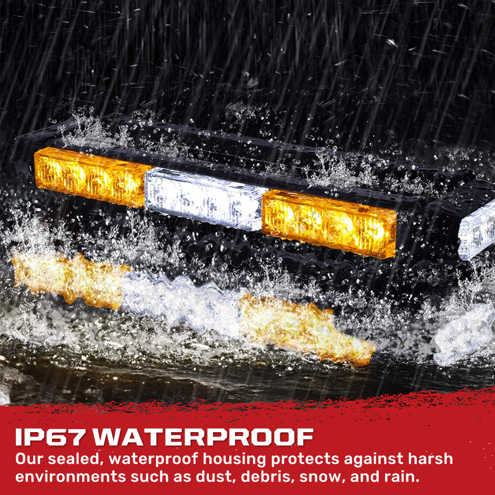Illuminate your vehicle's presence with our powerful exterior roof mounted 15" Emergency LED Strobe/Flashing Light Bar in Amber & White. Enjoy enhanced safety and visibility on the road with this versatile light bar. Their dual-color functionality provides optimal effectiveness, whether you're signaling caution or visibility. With 7x different strobe/flash lighting functions these lights ensure that you're seen in all driving conditions, making them perfect for emergency responders, construction vehicles, and anyone prioritizing safety.