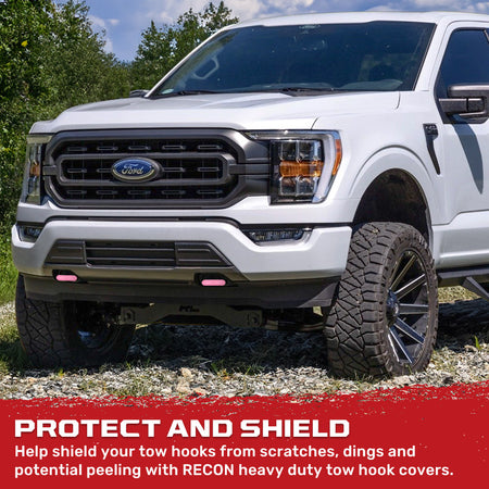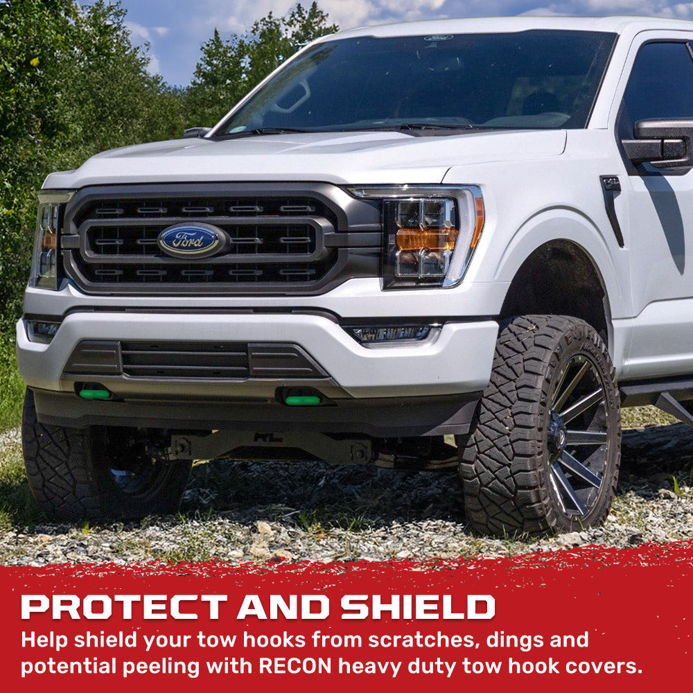 RECON - Ford 2015-2023 F150 & Raptor Tow Hook Covers 2-Piece Set of 100% Silicone Rubber Tow Hook Covers Standard & LED Style - Multiple Colors