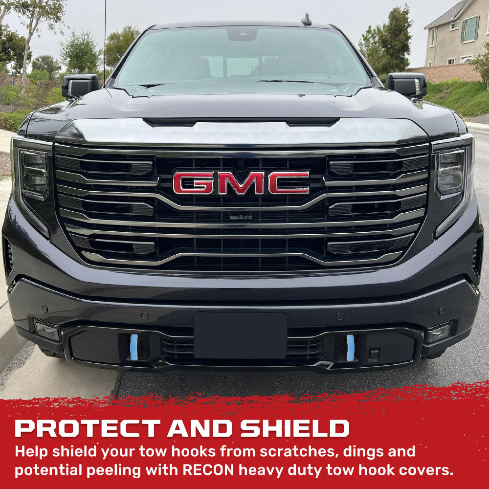 RECON - GMC 2020-2025 Sierra 1500 Tow Hook Covers 2-Piece Set of 100% Silicone Rubber Tow Hook Covers Standard & LED Options - Multiple Colors