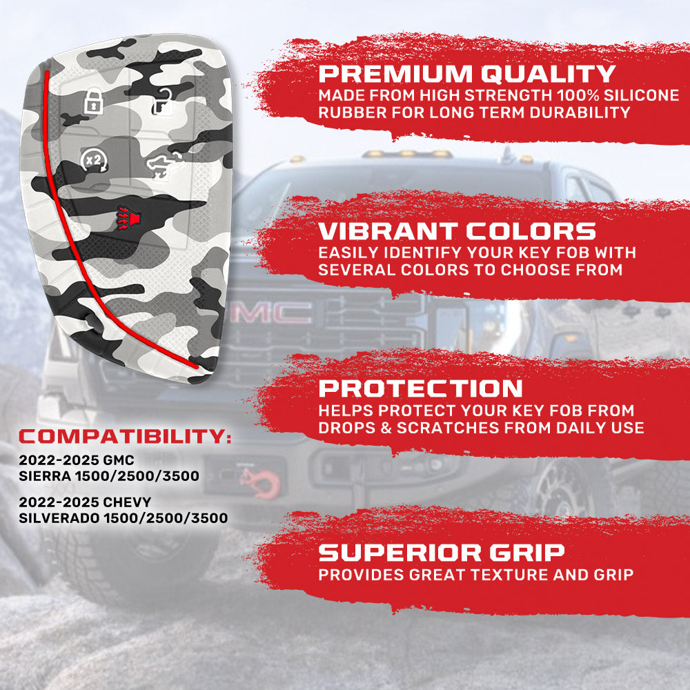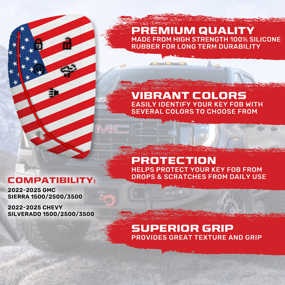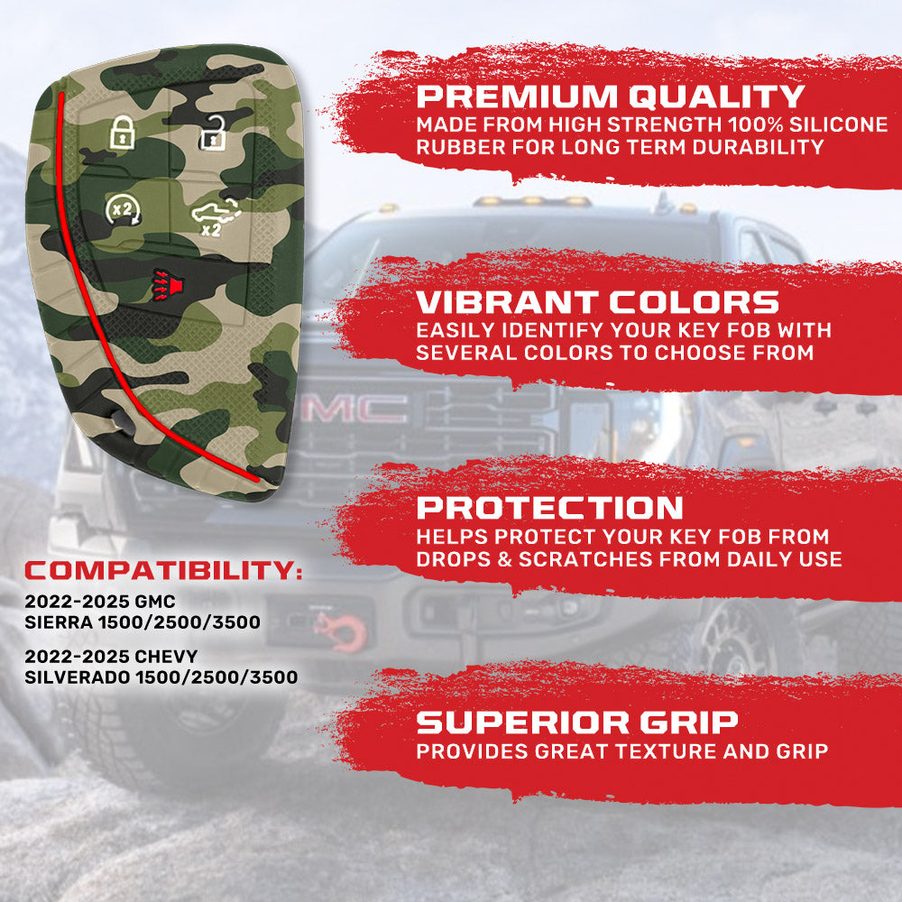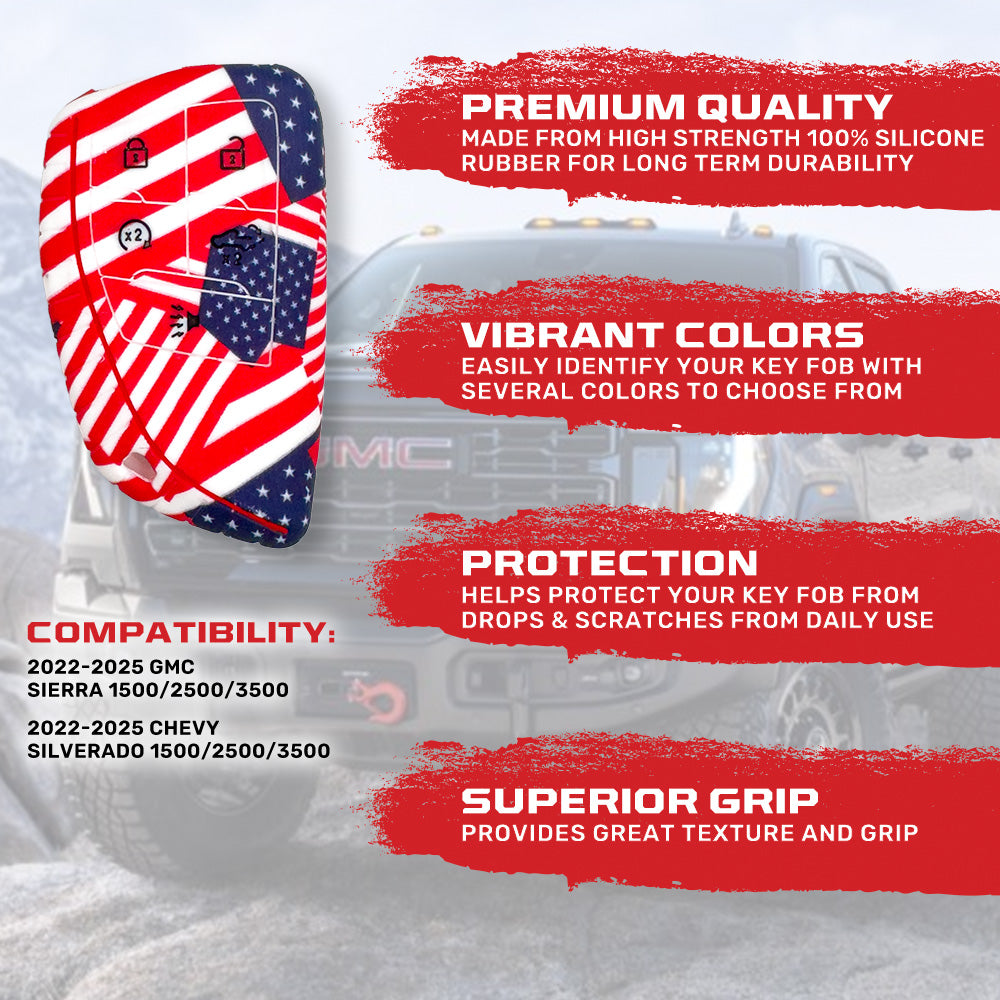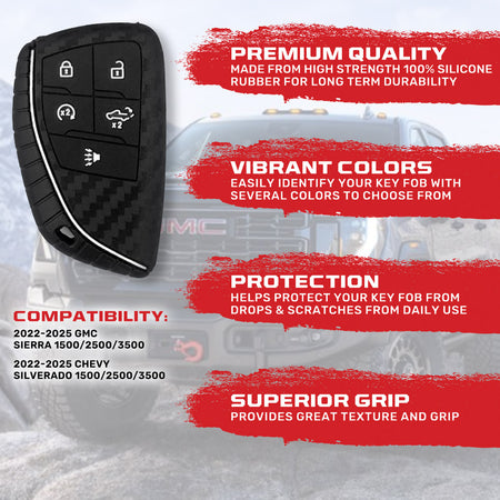 GMC & Chevy 22-25 Sierra & Silverado 1-Piece 100% Silicone Rubber Key Fob Cover - Multiple Colors