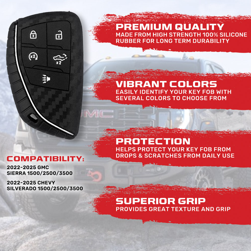 RECON - GMC/Chevy 2022-2025 Sierra & Silverado 100% Silicone Rubber Key Fob Cover Premium Quality - Multiple Colors