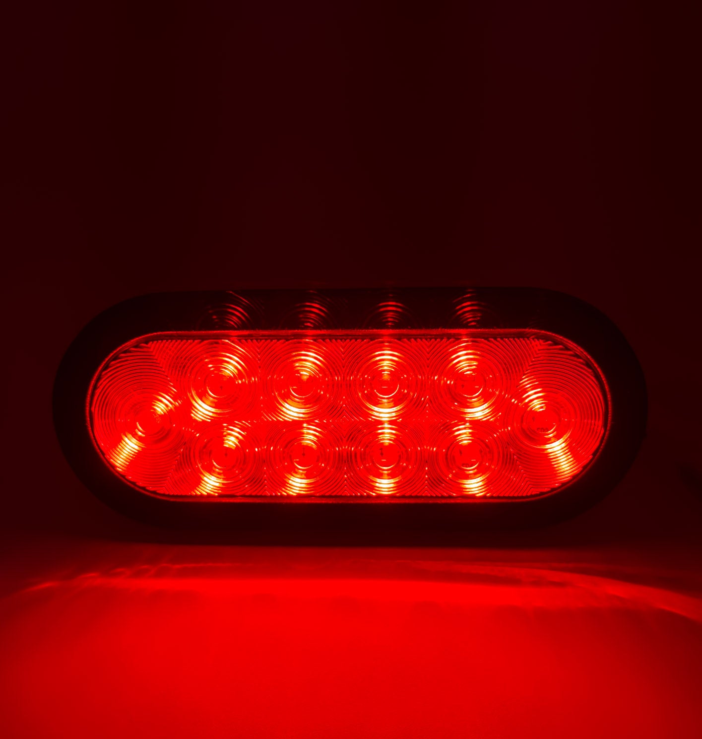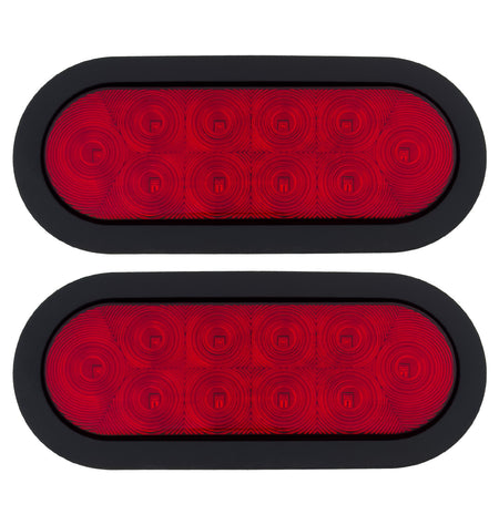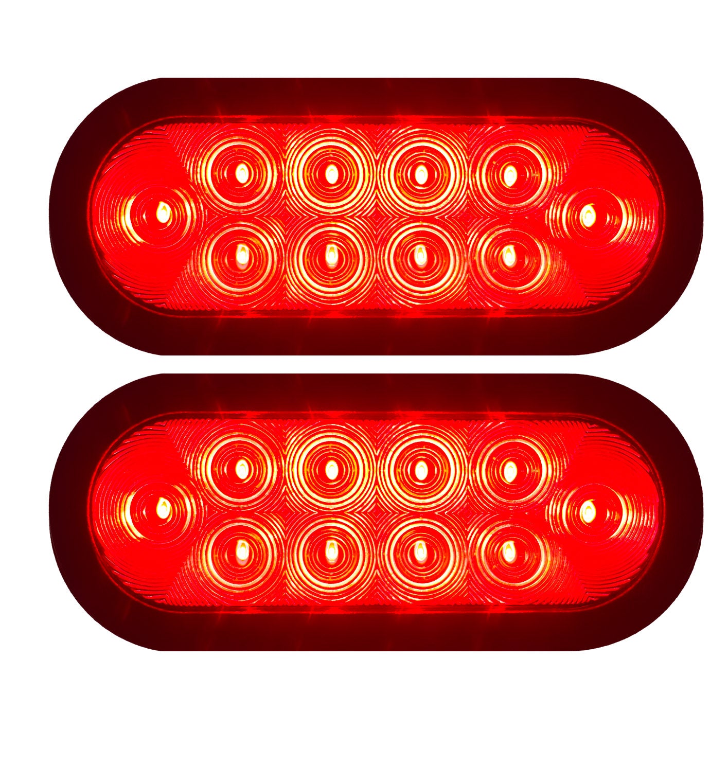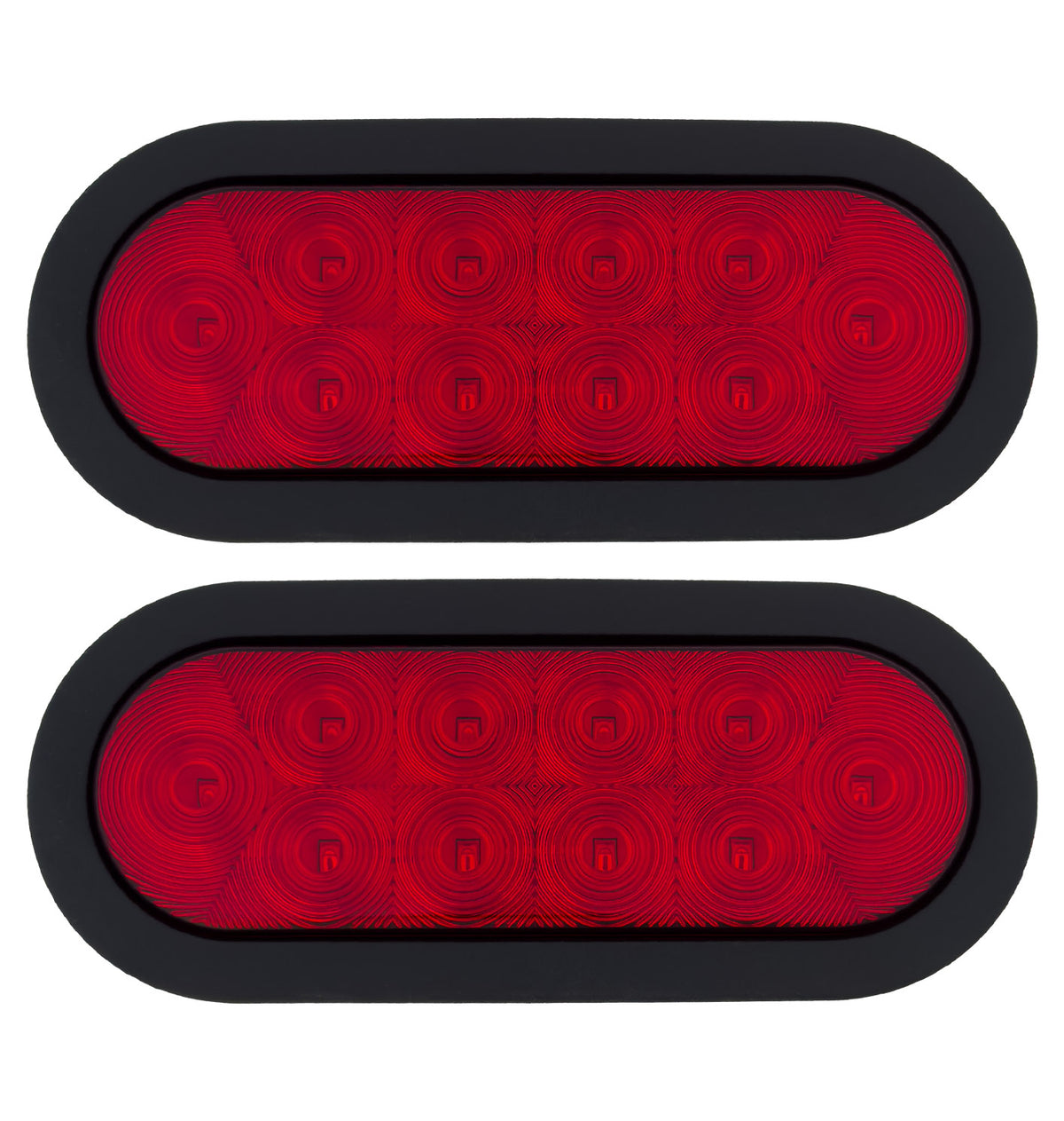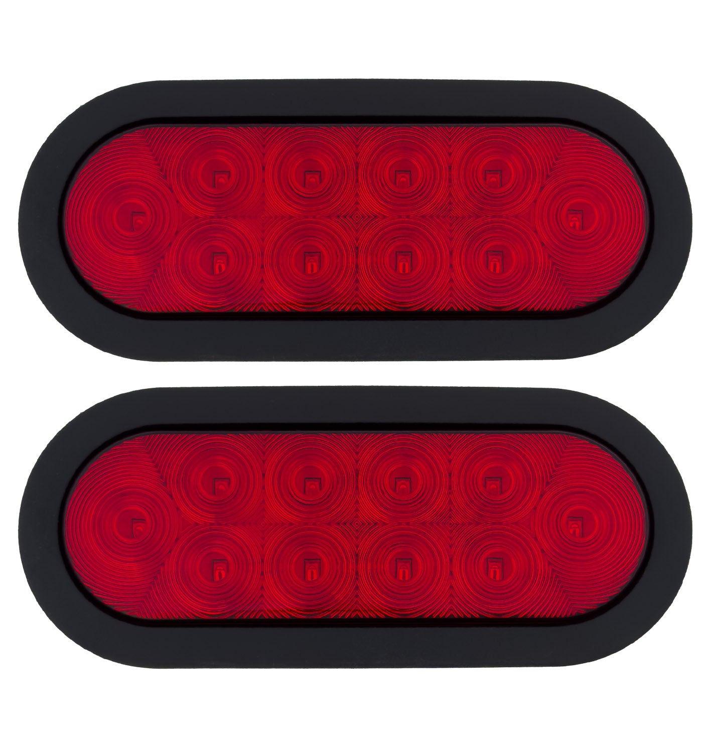 Red Oval 6" Universal 2-Pc LED Cargo Trailer Lights (Red Running Lights, Brake Lights & Turn Signals) 4-Wire Pin System