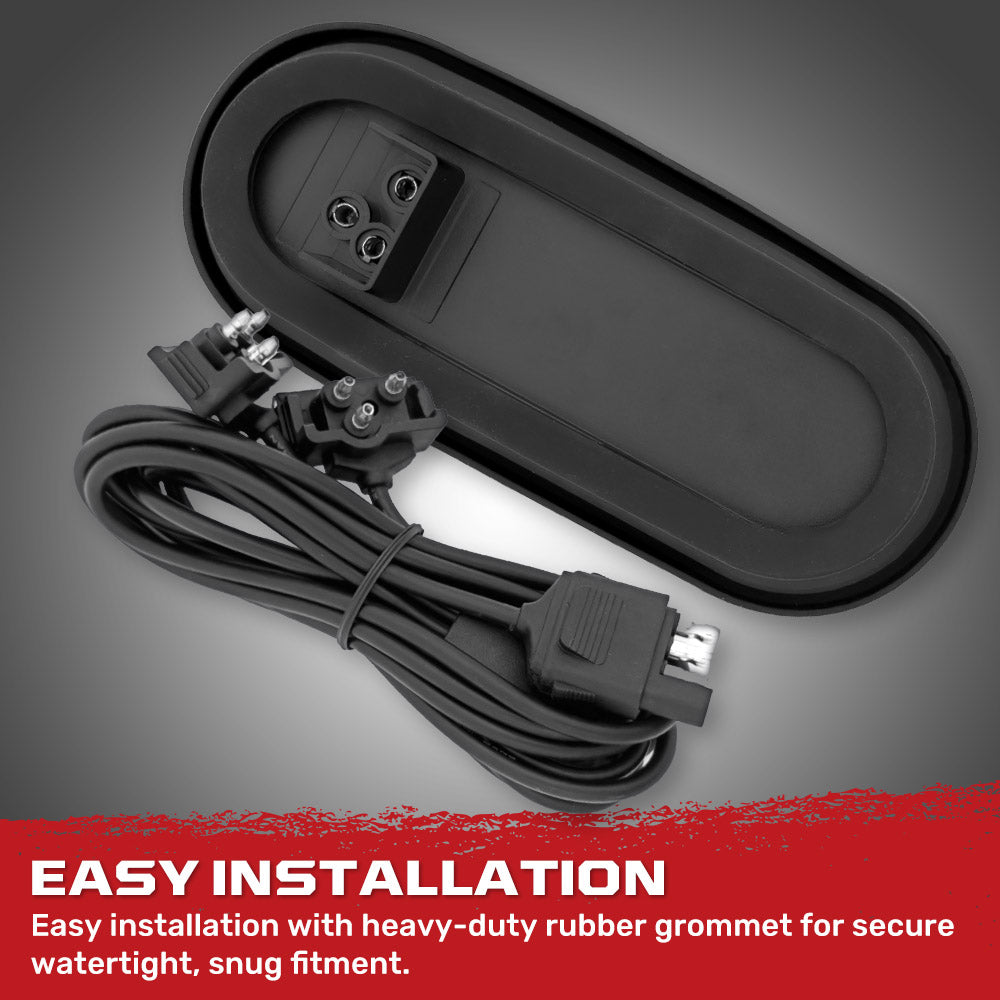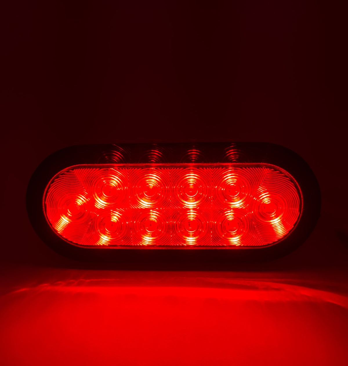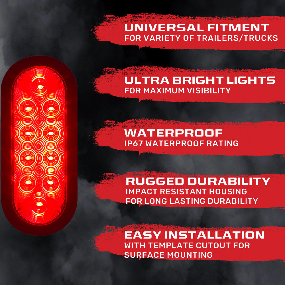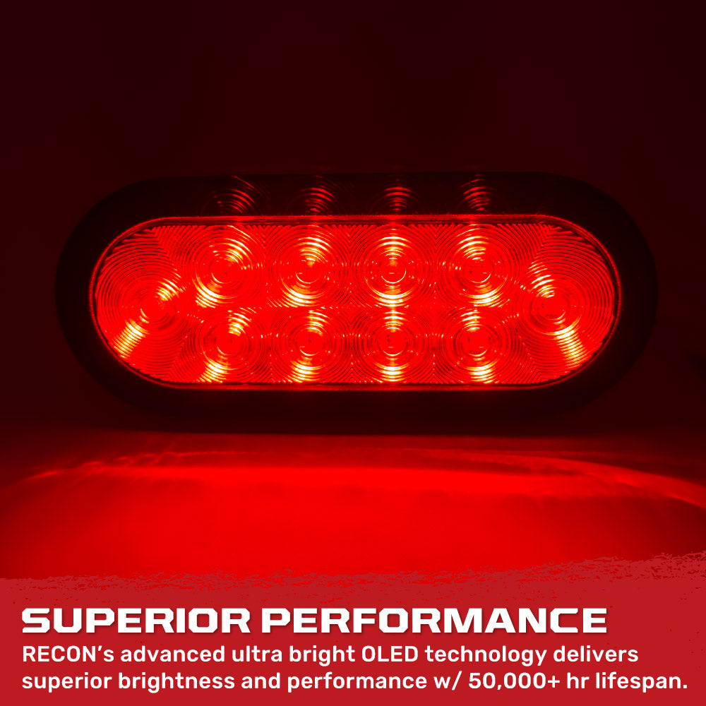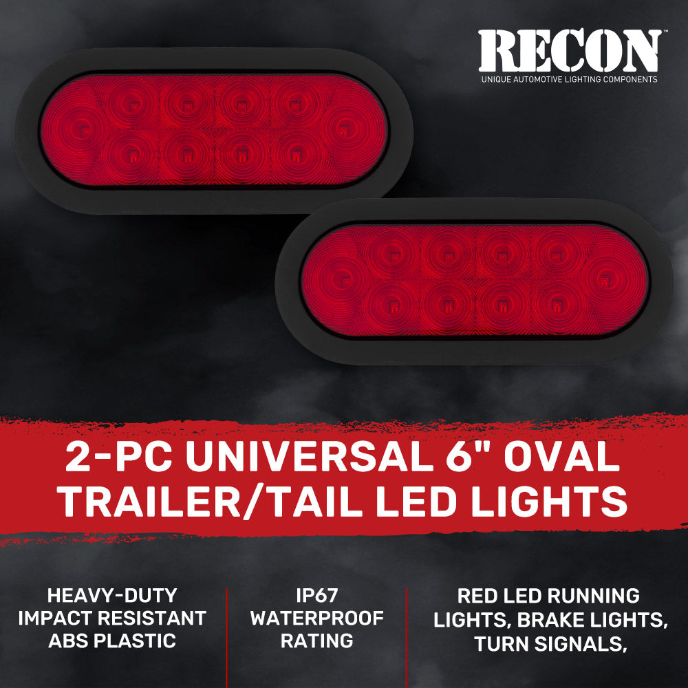 • RECON Red Oval 6" Universal 2-Pc LED Cargo Trailer Lights (Red Running Lights, Brake Lights & Turn Signals) 4-Wire Pin System