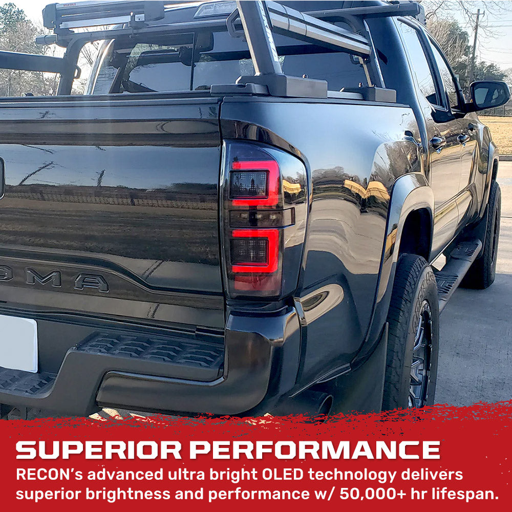 RECON Part # 264388BK - Toyota Tacoma 2016-2023 Ultra Bright OLED Tail Lights - Smoked Lens