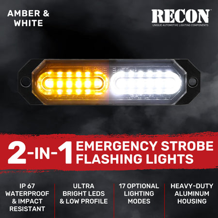 - RECON Universal 8-PC Ultra Slim Aluminum Surface Mounted 4.5" Emergency Ultra Bright LED Strobe Amber & White w/ 17 Light Functions