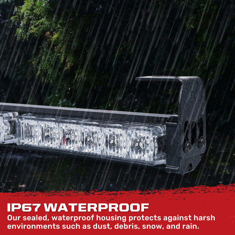 Constructed with a rugged aluminum housing, this chase light bar is designed to handle harsh trails, heavy vibration, and extreme weather. Paired with scratch-resistant, shatterproof PC lenses, the shockproof and corrosion-resistant design delivers over 50,000 hours of reliable performance no matter where the ride takes you.