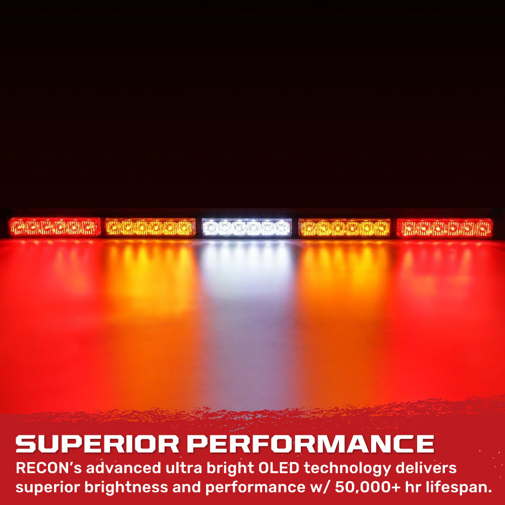 RECON LED Strobe Chase Bar delivers complete rear lighting in one powerful setup, combining running, brake, turn signal, reverse, and strobe lighting. With 5 LED blocks, 7 strobe patterns, and dedicated sections for each function, it ensures maximum visibility and clear signaling in fog, rain, snow, or dust. Whether you’re cruising, braking, or backing up, every move is clearly seen.