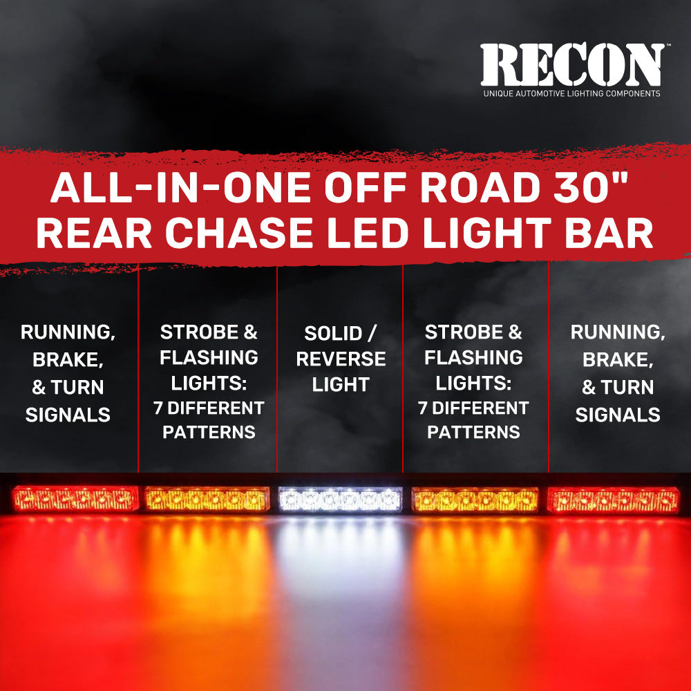 - RECON 1-PC Universal Offroad ATV/UTV 30" LED Rear Chase Light Bar (Strobe/Flashing, Running, Brake, Reverse & Turn Signals)