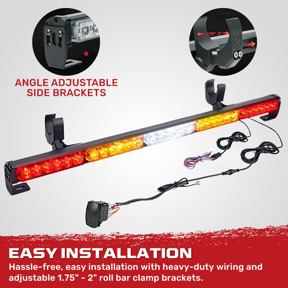 Installation is a breeze with the adjustable bracket that fits 1.75” – 2” roll cages and allows 180° angle adjustment. You can also use the included screw-mount bracket for a secure, fixed position. The rocker switch lets you independently control brake lights, reverse lights, and strobe patterns, making operation intuitive and hassle-free right out of the box.